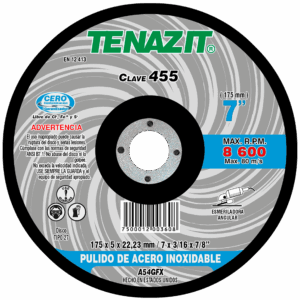 455 7 x 3/16 x 7/8 Disco con centro deprimido para pulido de acero inoxidable