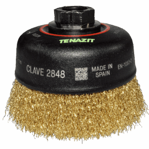 2848 4 x 0.012 x MR Cepillo tipo copa de Alambre ondulado Latonado