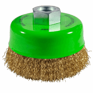 2860 3 x 0.012 x 1/4 Cepillo tipo copa de Alambre ondulado Latonado