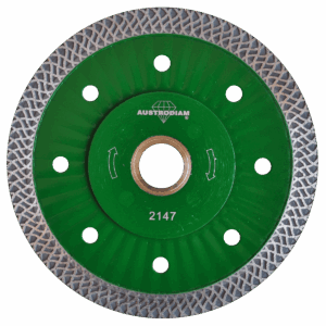 2147 4-1/2 x 0.05 x 7/8 Disco Turbo de diamante con cuerpo ondulado y perforado de 115 x 1.3 mm para corte de loseta cerámica, porcelanato, granito y piedra de ingeniería.