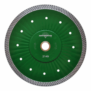 2149 7 x 0.06 x 7/8 Disco Turbo de diamante con cuerpo ondulado y perforado de 180 x 1.6 mm para corte de loseta cerámica, porcelanato, granito y piedra de ingeniería.