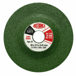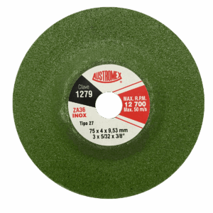 1279 3 x 5/32 x 3/8 Mini disco tipo 27 de 75 mm – Grano 36 para desbaste.