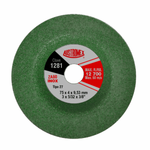 1281 3 x 5/32 x 3/8 Mini disco tipo 27 de 75 mm – Grano 80 para acabado fino.