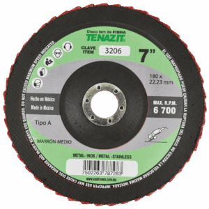 3204 4 1/2 x 7/8 Disco de fibra de 115 x 22.23 mm de óxido de aluminio – grano grueso para acabado.