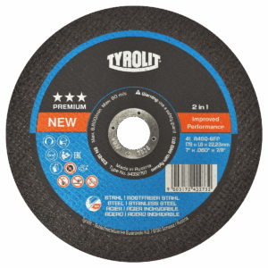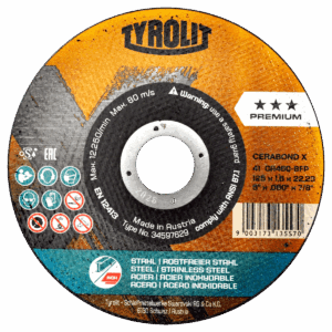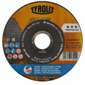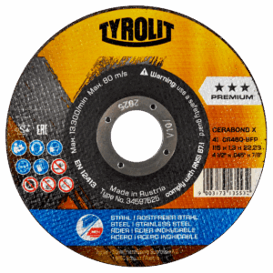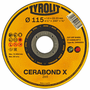4257 4 1/2 x 1/16 x 7/8 Disco de corte Tyrolit Cerabond X de 115 x 1.6 x 22.23 mm, 2 en 1.