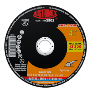 3502 4-1/2X1/16X7/8 Disco de corte 2 en 1 para acero al carbón y acero inoxidable de 115 x 1.6 x 22.23, KREATOR