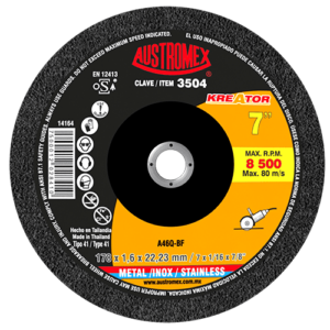 3504 7X1/16X7/8 Disco de corte 2 en 1 para acero al carbón y acero inoxidable de 178 x 1.6 x 22.23, KREATOR