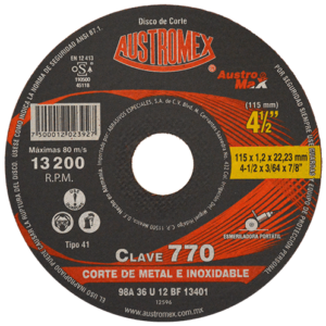 770 4-1/2X3/64X7/8 Disco para corte de metal
