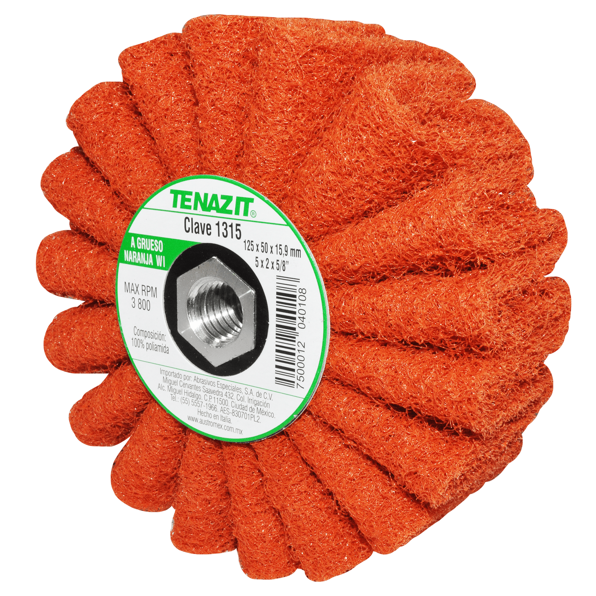 1315 RF A GSO NARANJA W I 5 x 2 x 5/8 TENAZIT Rueda de fibra de 125 x 50 x 15.9 mm, grano Grueso para satinado y acabado de superficies. Lijadora Satinadora