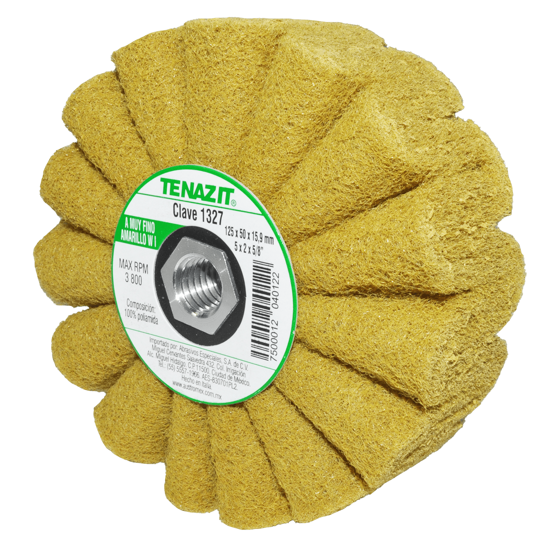 1327 RF A MF AMARILLO W I 5 x 2 x 5/8 TENAZIT Rueda de fibra de 125 x 50 x 15.9 mm, grano Muy Fino para satinado y acabado de superficies. Lijadora Satinadora