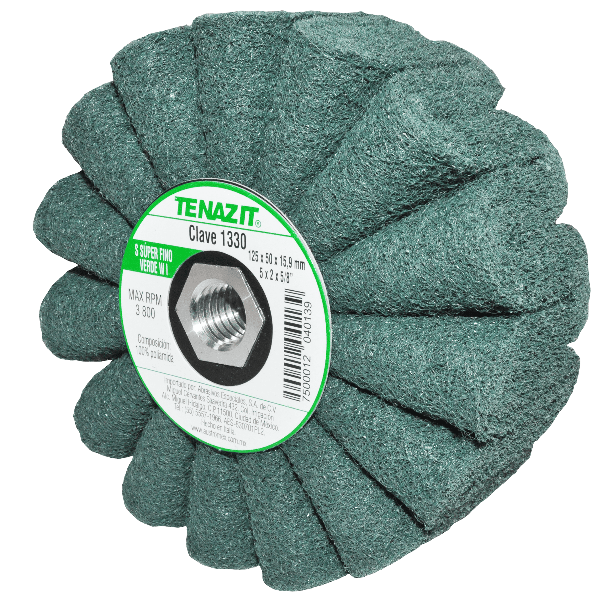 1330 RF S SF VERDE W I 5 x 2 x 5/8 TENAZIT Rueda de fibra de 125 x 50 x 15.9 mm, grano Super Fino para satinado y acabado de superficies. Lijadora Satinadora