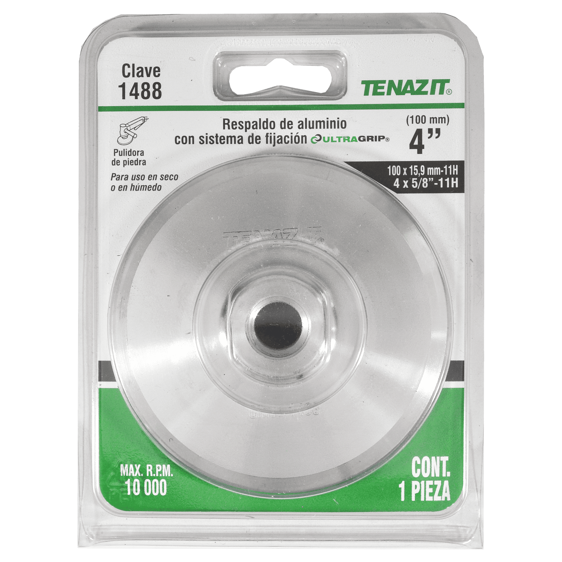 1488 REW58 Aluminio VELCRO 4 x 5/8-11 Respaldo de aluminio para pulido. Pulidora De Piedra