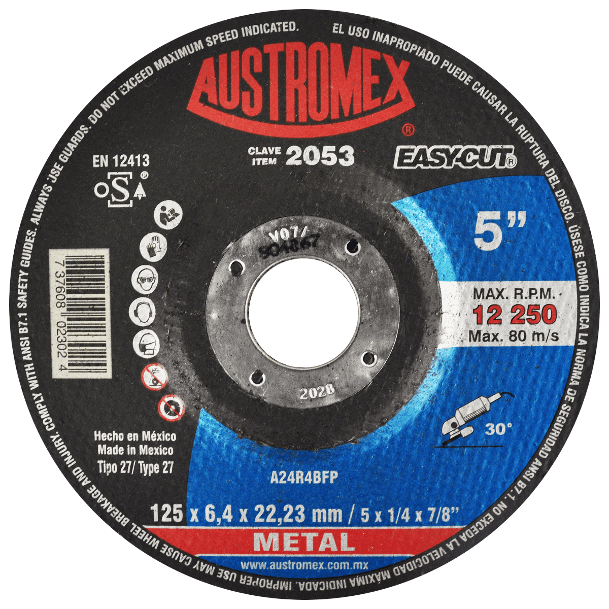 2053 27 A24R4BFP 5 x 1/4 x 7/8 AUSTROMEX Disco abrasivo de 125 x 6.4 x 22.23 mm para desbaste de metal Esmeriladora Angular