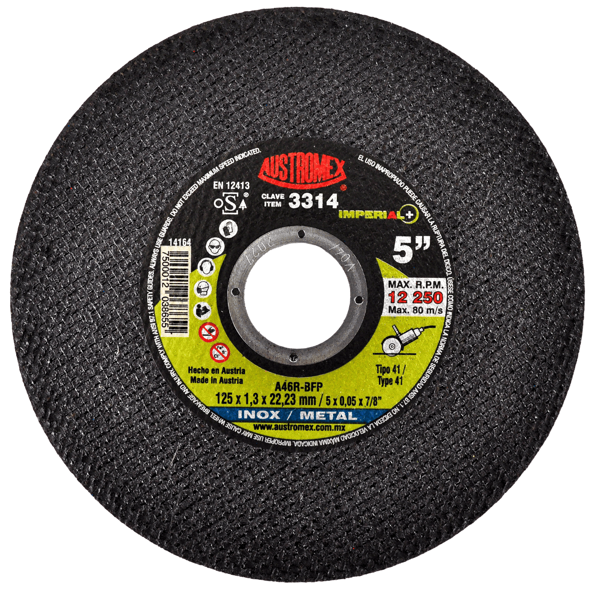 3314 41 A46R-BFP 5 x 0.055 x 7/8 AUSTROMEX Disco para corte de inox y metal de 125 x 1.3 x 22.23 mm Esmeriladora Angular