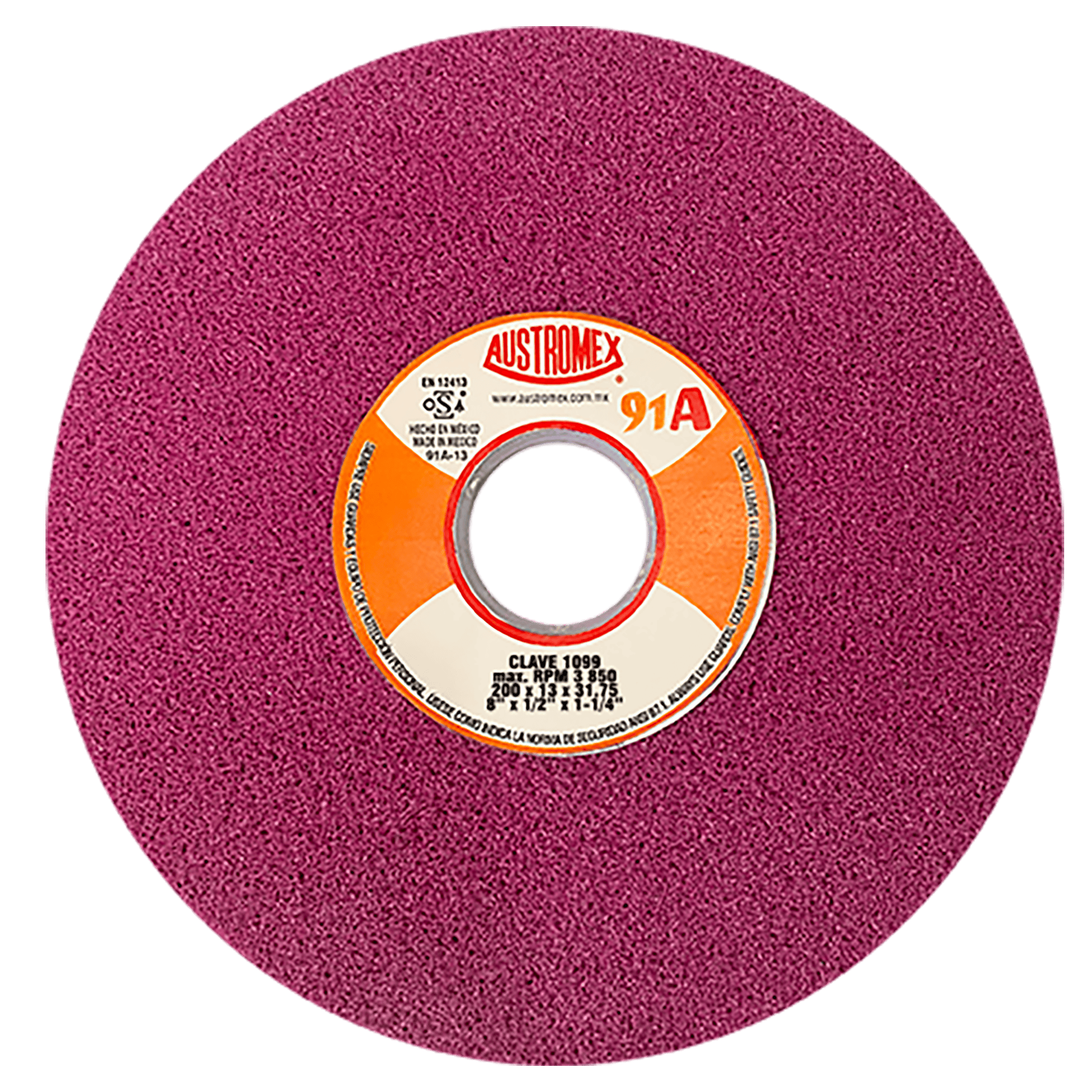 1099 1 91A80I1pVH5 8 x 1/2 x 1-1/4 AUSTROMEX Rueda vitrificada con grano ruby tipo 1 de 200 x 13 x 31.75mm. Afiladora Universal, Rectificadora