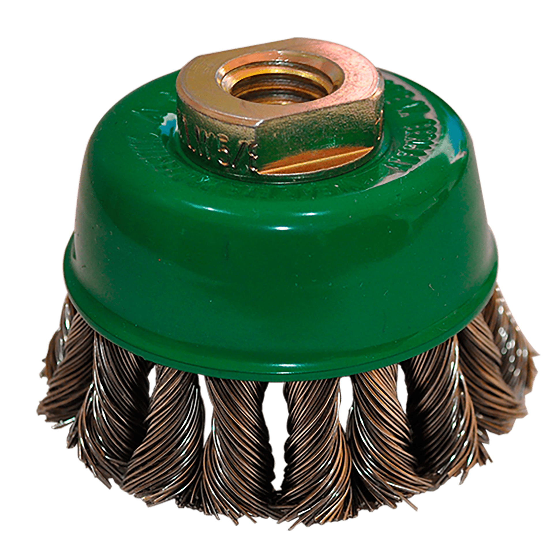 1102 C.C.T.D.D 18T INOX IZQ/DER 0.50 2-1/2 x 0.020 x MR TENAZIT Cepillo en copa trenzado izquierda/derecha de acero inoxidable.