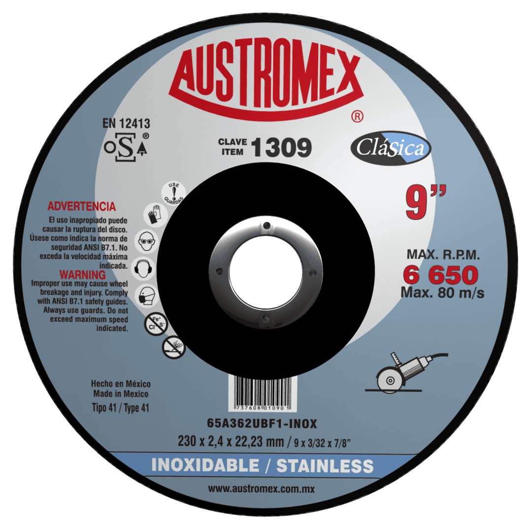 1309 41 65A362UBF1-INOX 9 x 5/64 x 7/8 AUSTROMEX Disco para corte de metal Esmeriladora Angular