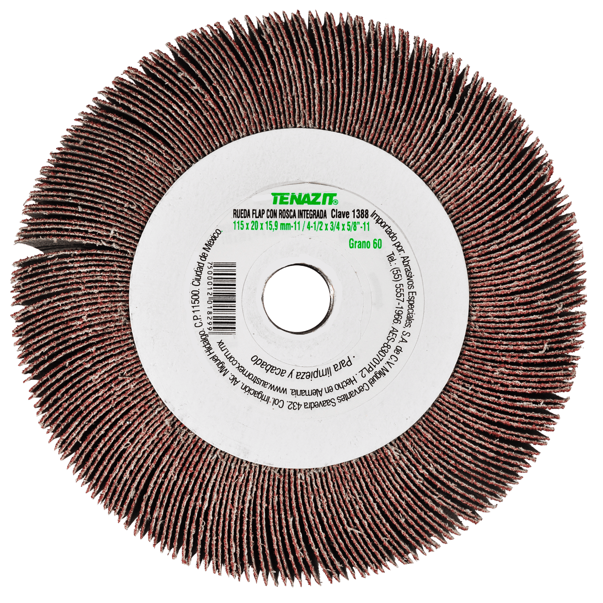 1388 R.T.FLAP A60B 4-1/2 x 3/4 x 5/8 TENAZIT Línea Premium Rueda flap con rosca integrada grano 60 Esmeriladora Angular
