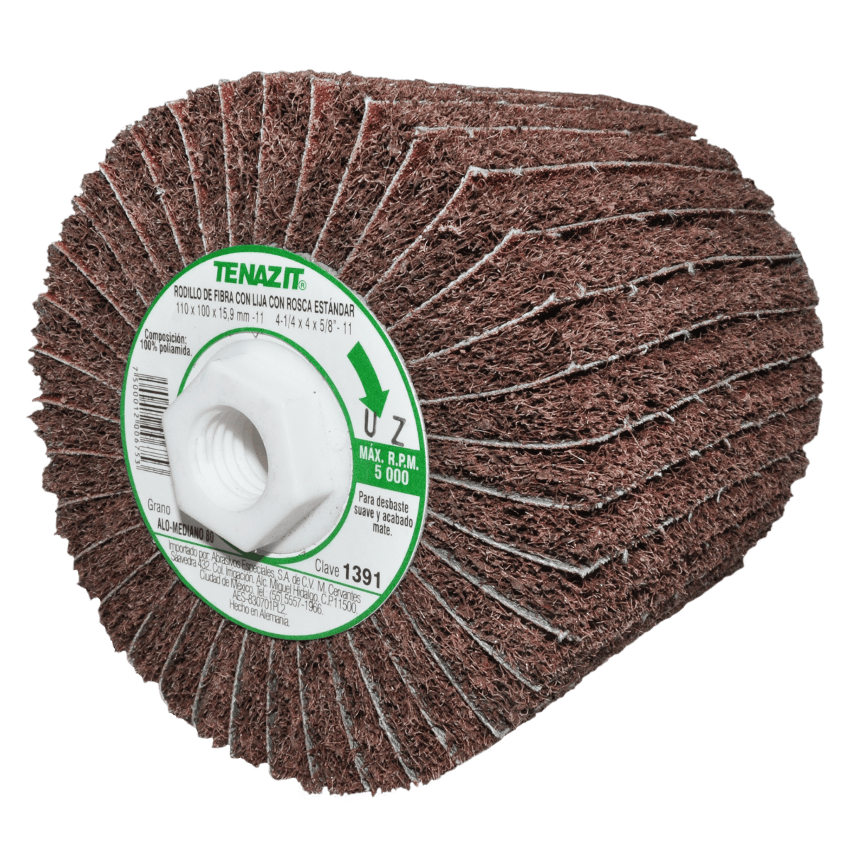 1391 RFL ALO-MED/80 4-1/4 x 4 x 3/4 TENAZIT Línea Premium Rodillo de fibra con lija grano 80 Satinadora de Velocidad Variable (lijadora)