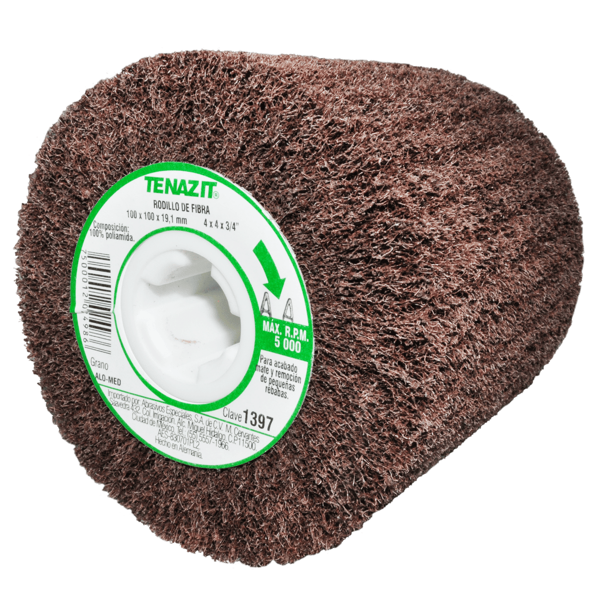 1397 RF ALO-MED 4 x 4 x 3/4 TENAZIT Rodillo de fibra Grano medio Satinadora de Velocidad Variable (lijadora)