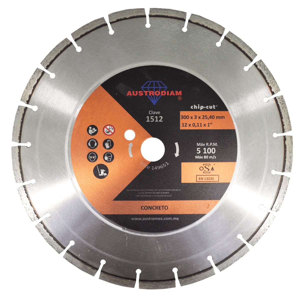 1512 D.D.D. NARANJA-CHIP CUT 12 x 0.110 x 1 AUSTRODIAM Disco de diamante naranja segmentado Corte de concreto curado Cortadora de Piso
