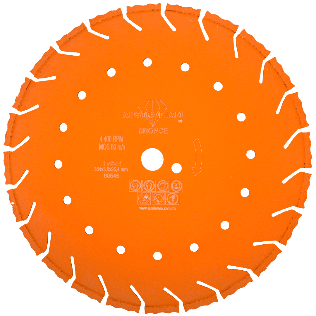 1524 D.D.D. NARANJA-BRONCE 14X0.11X1 AUSTRODIAM Disco de diamante naranja segmentado Corte de concreto curado Cortadora De Piso