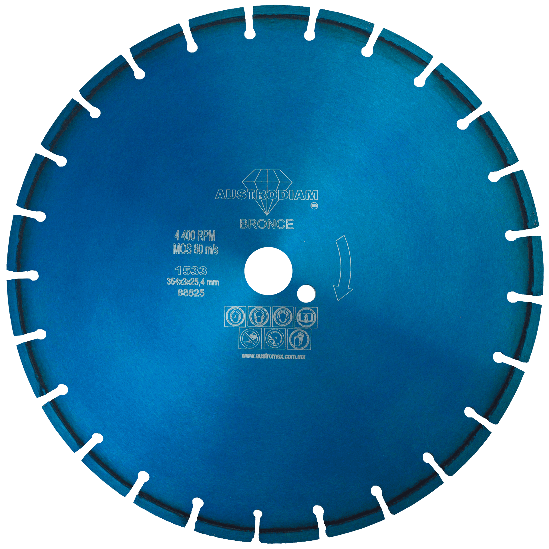 1533 D.D.D. AZUL-BRONCE 14 x 0.11 x 1 AUSTRODIAM Disco de diamante azul segmentado Uso General Cortadora de Mampostería