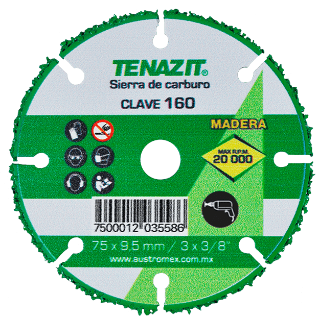 160 SM-1 SIERRA SAR – MADERA 3 x 3/8 TENAZIT Sierra de carburo de tungsteno para corte de madera con soldado de alta resistencia Taladro