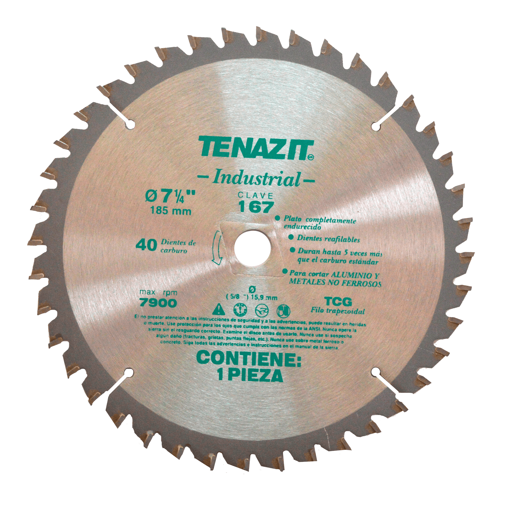167 SMI40 ALUMINIO 40T TCG 7 1/4 x 5/8 TENAZIT Sierra metálica para metales no ferrosos Sierra Circular