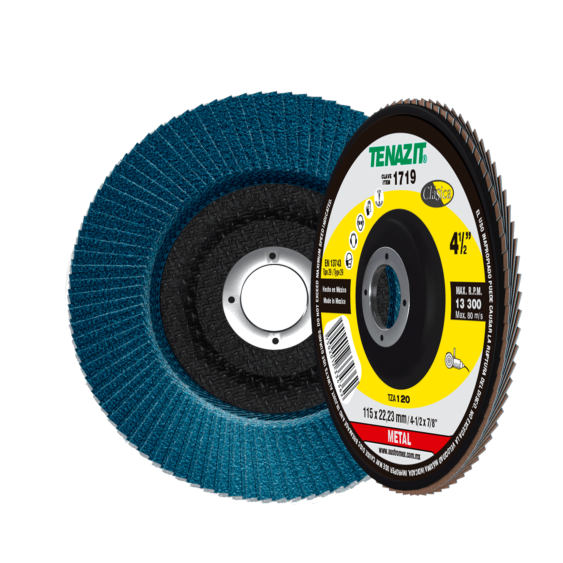 1719 D.T.29LAM TZA-120 4 1/2 x 7/8 TENAZIT Disco laminado Tenazit grano 120 Esmeriladora Angular, Lijadora Angular, Satinadora de Velocidad Variable