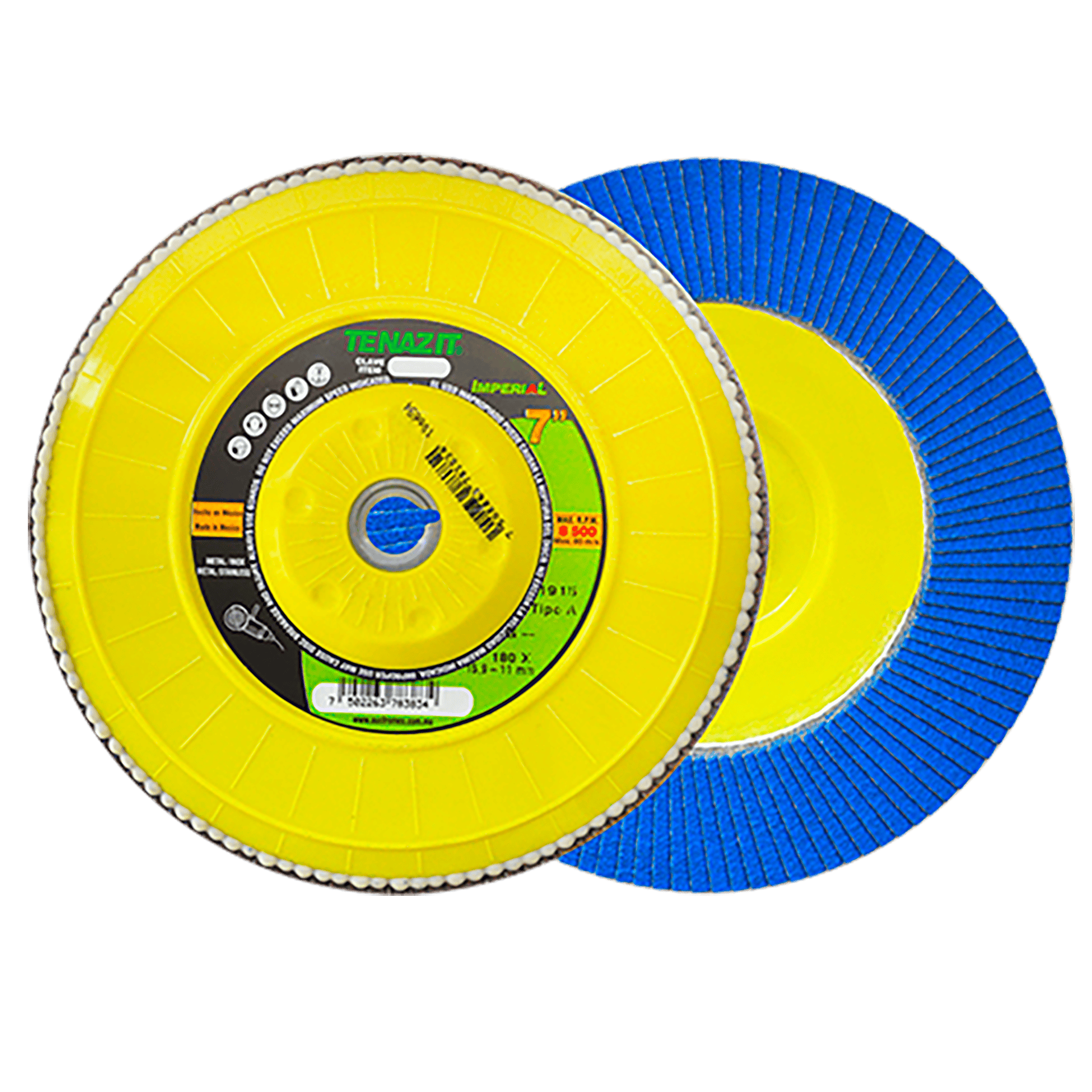 1915 7 x 5/8 – 11 Disco laminado Imperial grano cerámico, de 180 x 15.9 – 11- G80 con respaldo ABS y rosca metalica integrada