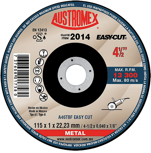 2014 41 A46TBF EASY CUT 4-1/2X0,040X7/8 AUSTROMEX Disco para corte de metal Esmeriladora Angular