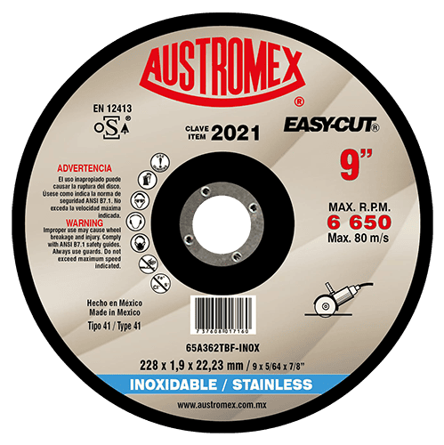 2021 41 65A362TBF-INOX 9X5/64X7/8 AUSTROMEX Disco para corte de metal ESMERILADORA ANGULAR PORTATIL