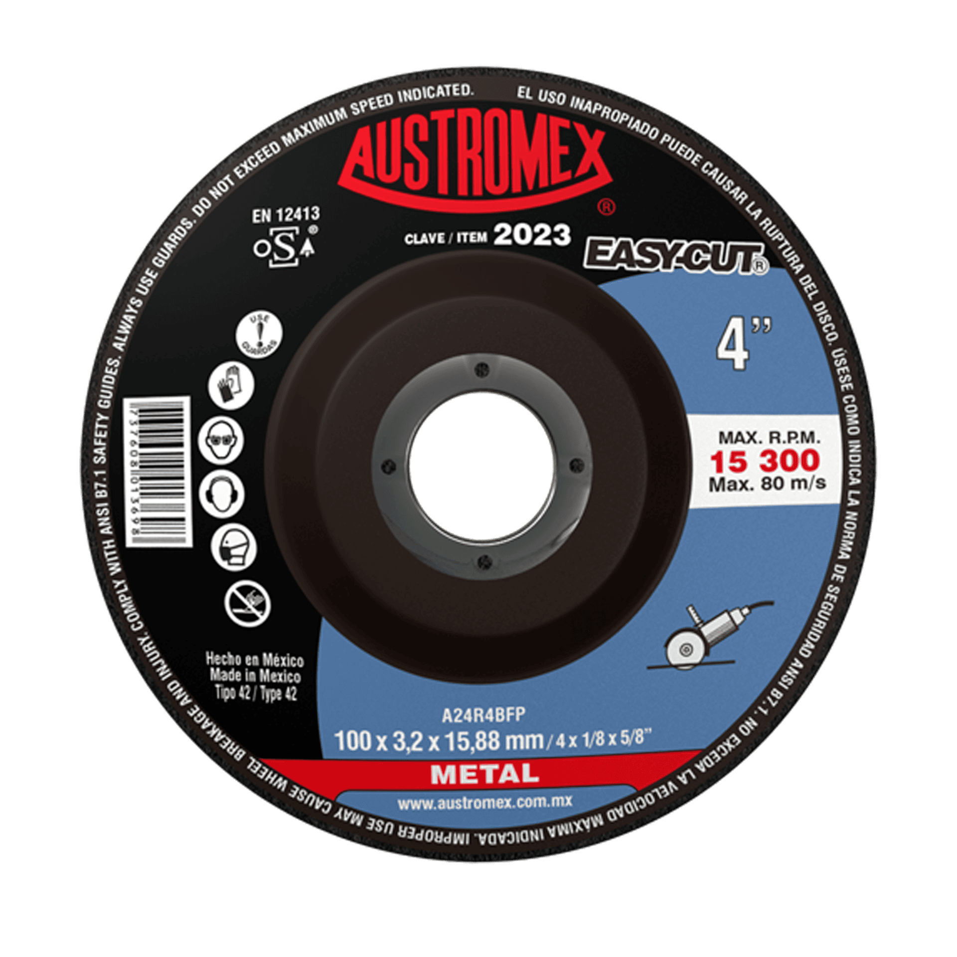 2023 42 A24R4BFP 4 x 1/8 x 5/8 AUSTROMEX Disco con centro deprimido para corte de metal Esmeriladora Angular