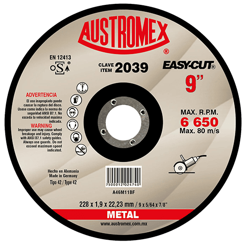 2039 42 A46M11BF 9X5/64X7/8 AUSTROMEX Disco con centro deprimido para corte de metal ESMERILADORA ANGULAR PORTATIL