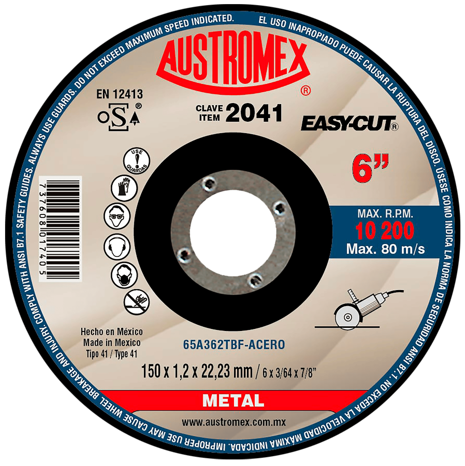 2041 41 65A362TBF-ACERO 6 x 0.050 x 7/8 AUSTROMEX Disco para corte de metal Esmeriladora Angular