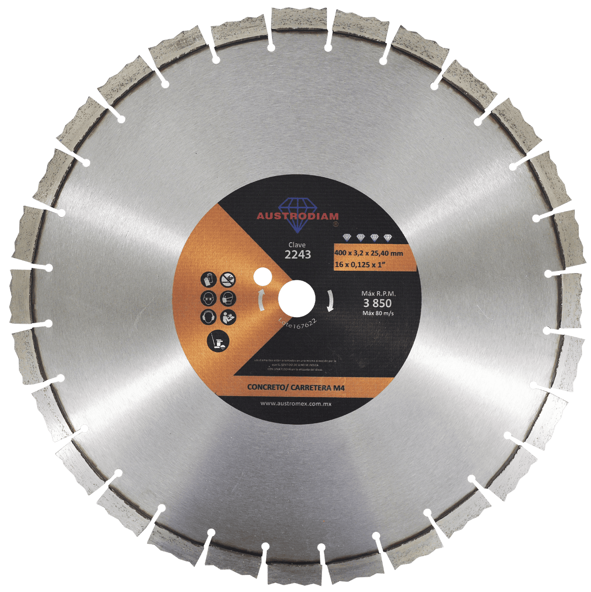 2243 D.D.D. CONCRETE ROAD PLUS M2 16 x 1/8 x 1 AUSTRODIAM Disco de diamante naranja segmentado Corte de carreteras de concreto Cortadora de Piso