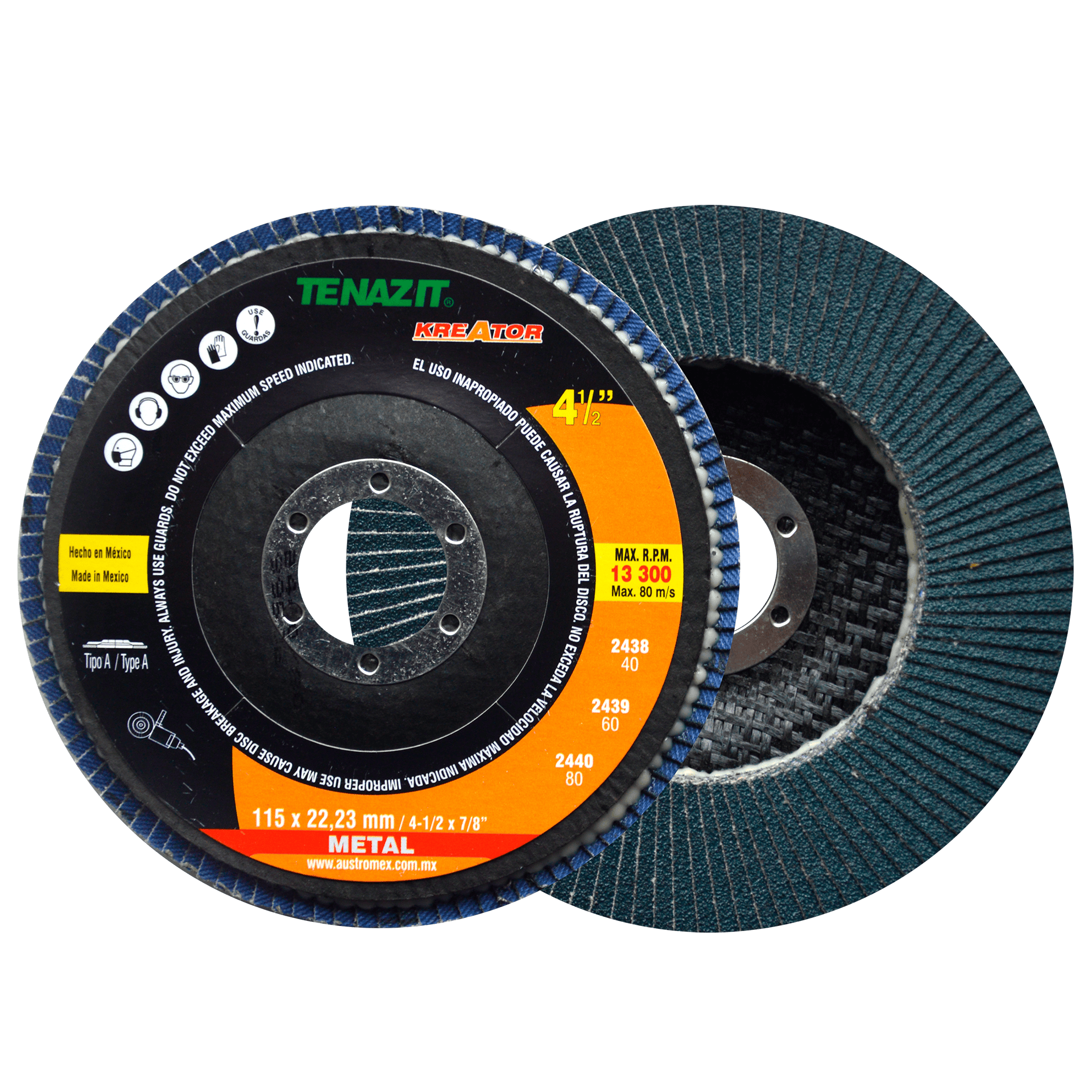 2439 A KREATOR-TZG60L90V 4-1/2 x 7/8 TENAZIT Disco laminado KREATOR grano 60 Esmeriladora Angular