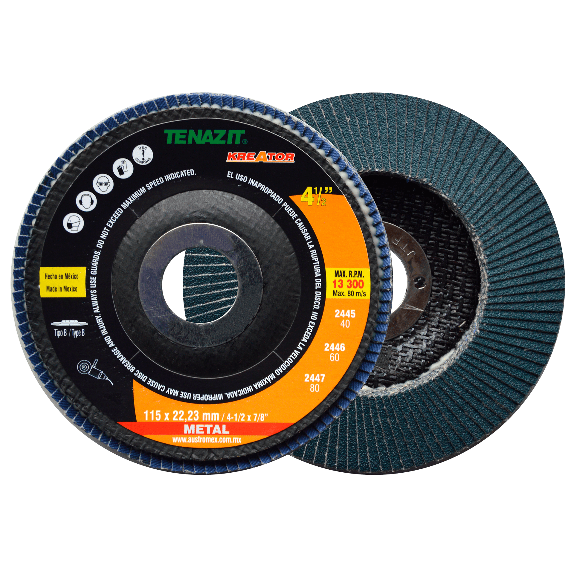 2446 B KREATOR-TZG60L90V 4-1/2 x 7/8 TENAZIT Disco laminado KREATOR grano 60 Esmeriladora Angular