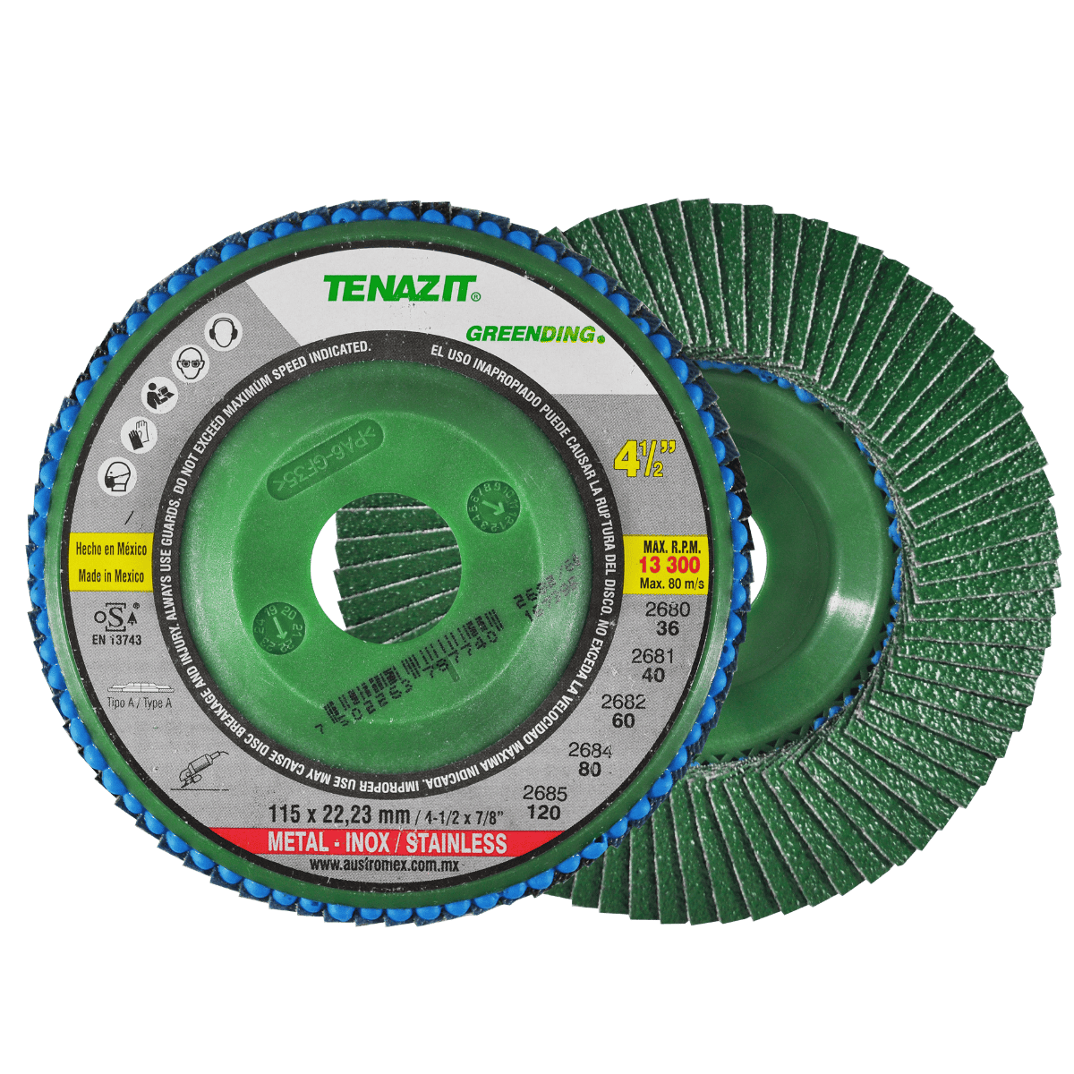 2685 LAM A TZe-120 4 1/2 x 7/8 TENAZIT Disco lam ecológico de 115 x 22.23 mm – grano 120 para desbaste de cordones de soldadura de acero al carbón e inoxidable. Esmeriladora Angular