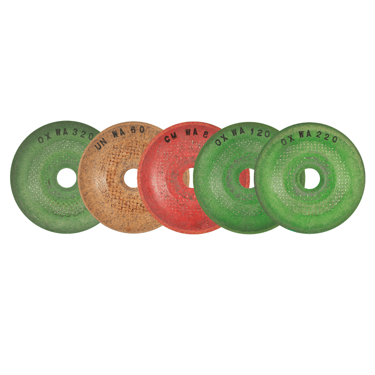 2719 2 1/4 x 1/8 x 3/8 Juego con discos abrasivos flexibles de 58 mm – Granos 60, 80, 120, 220 & 320 para rebabeo y pulido.