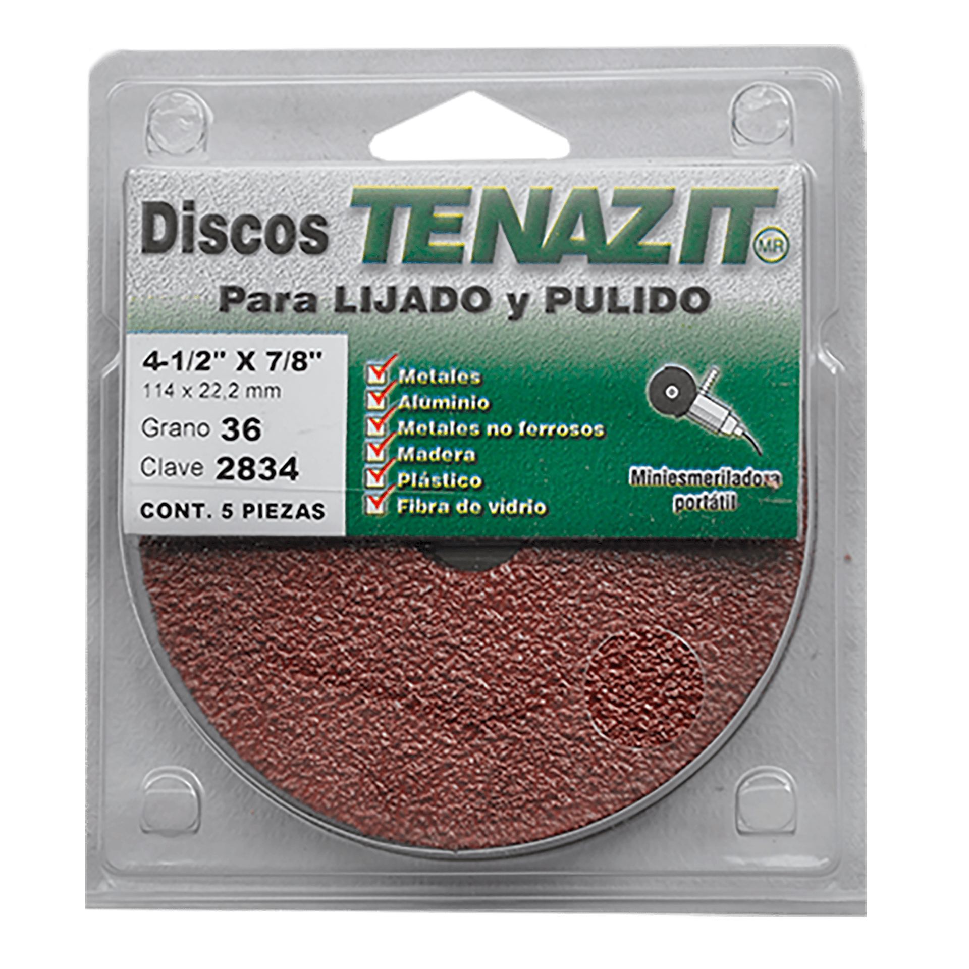 2834 PAQ 5 DL AAA-36 4-1/2 x 7/8 TENAZIT Fibrodisco de Óxido de aluminio grano 36 Esmeriladora Angular