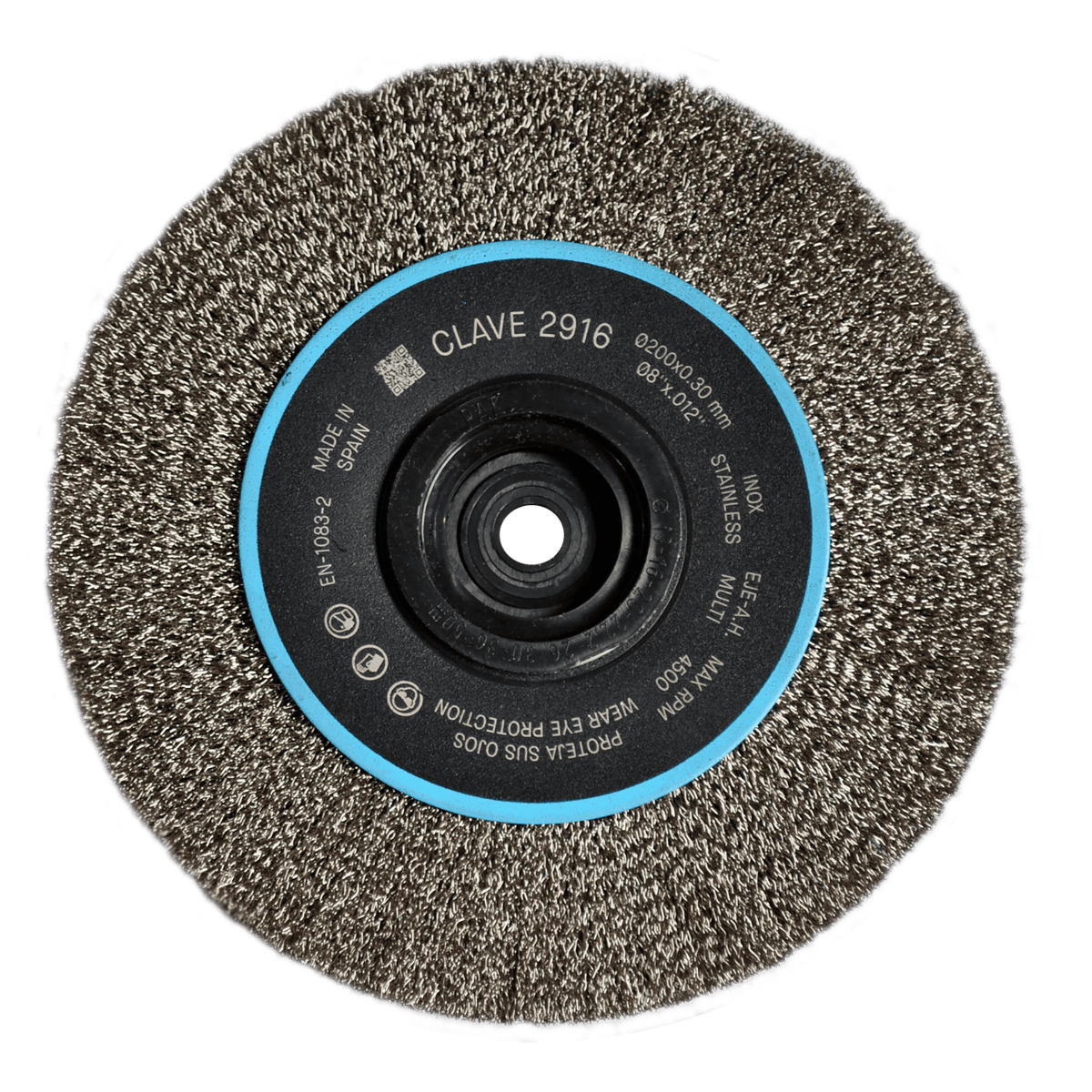 2916 C.R.O. Ondulado Inox 0.30 8 x 0.012 x ME TENAZIT Cepillo circular ondulado de 200 x 0.30 x ME con alambre de acero inoxidable para limpieza. Esmeriladora Angular