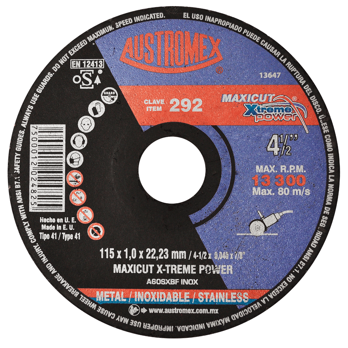 292 41 MAXICUT X-TREME POWER 4-1/2 x 0.040 x 7/8 AUSTROMEX Disco para corte de acero inoxidable Esmeriladora Angular