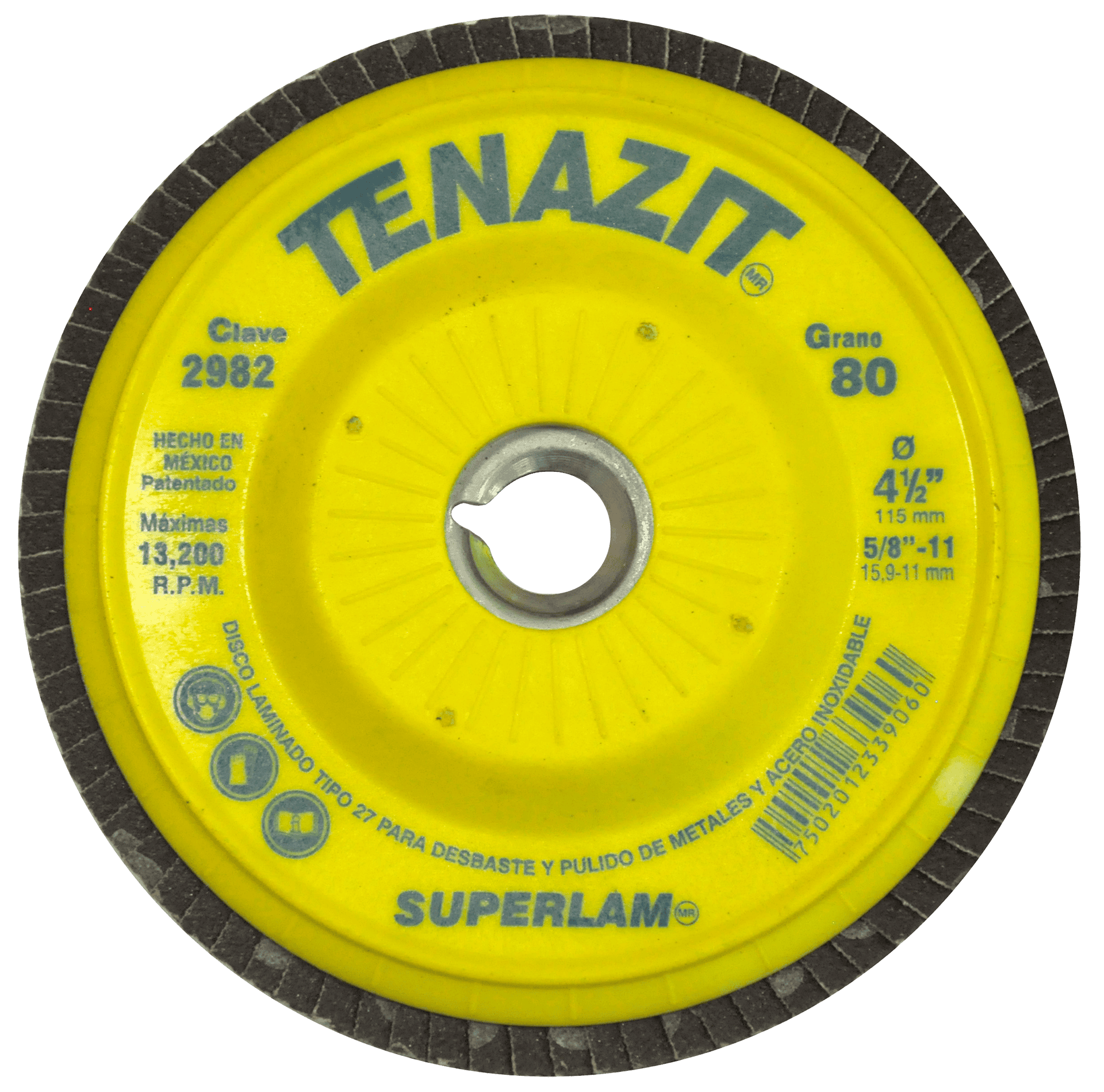 2982 LAM A SUPERLAM Z80 4-1/2 x 5/8-11 TENAZIT Disco laminado SUPERLAM grano 80 Esmeriladora Angular