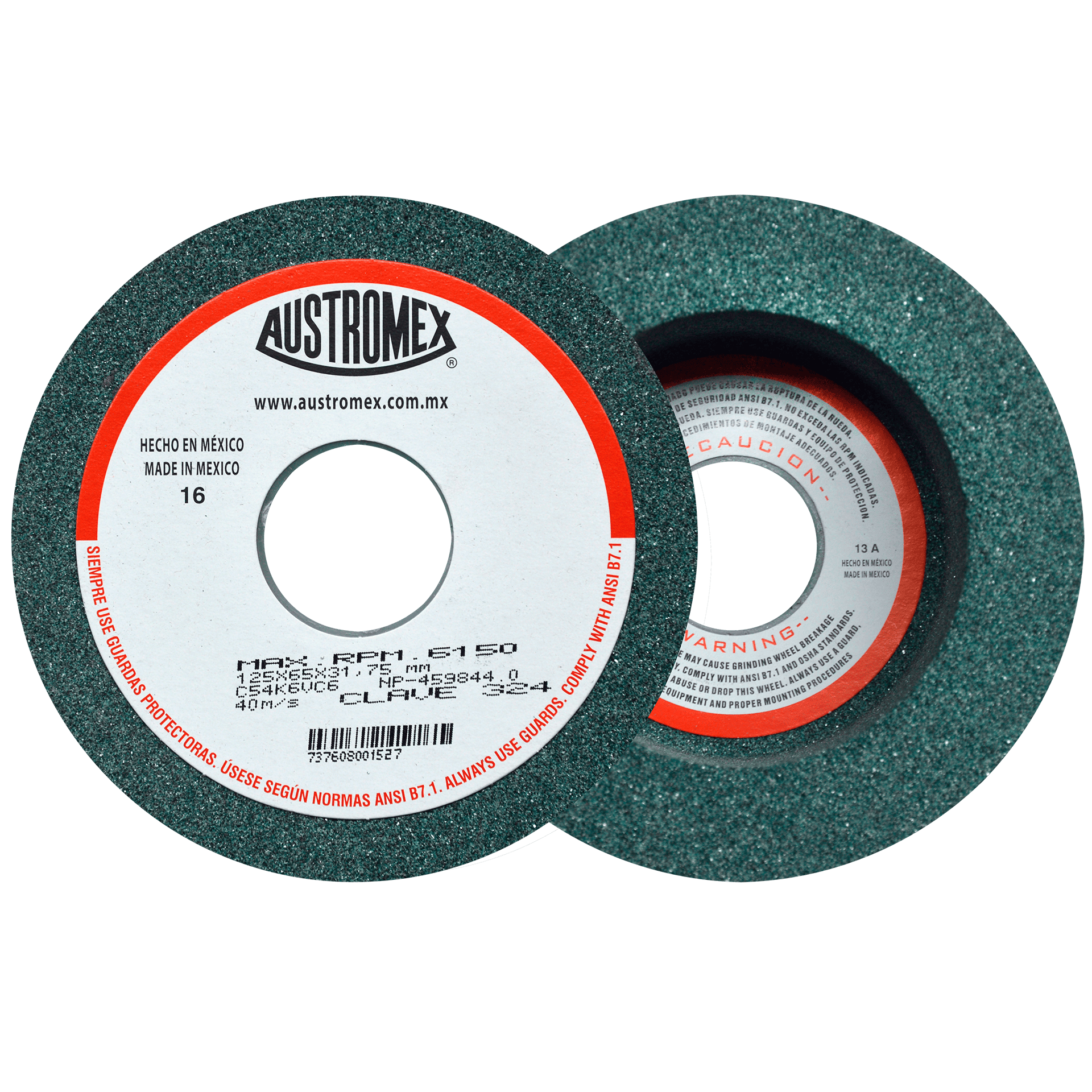 324 6 C54K6VC6 5 x 2-1/2 x 1-1/4 AUSTROMEX Rueda verde vitrificada para afilado de acero Afiladora Universal