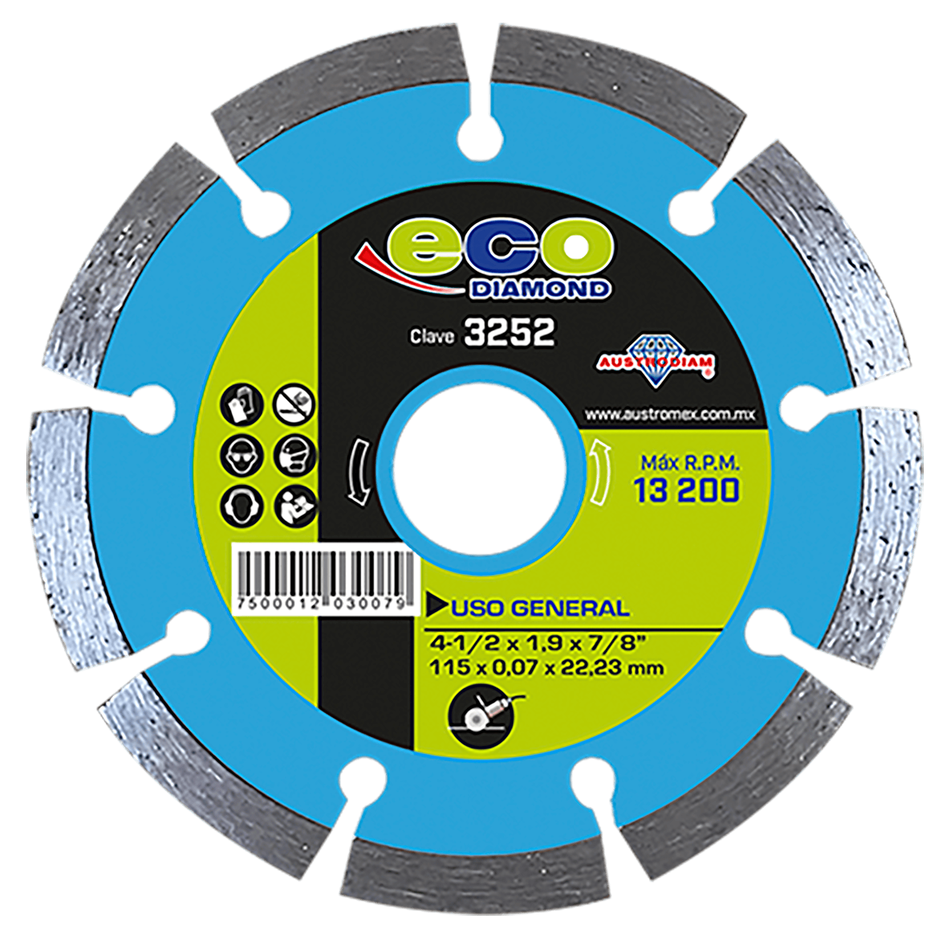 3252 DDD ECO 4-1/2 x 0.075 x 7/8 AUSTRODIAM Disco de diamante de rin segmentado para uso general ECO Esmeriladora Angular