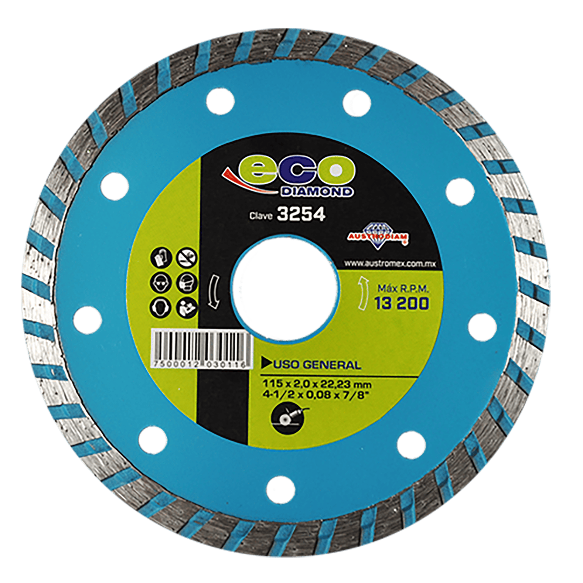 3254 DDT ECO 4-1/2 x 0.08 x 7/8 AUSTRODIAM Disco de diamante turbo para uso general ECO Esmeriladora Angular