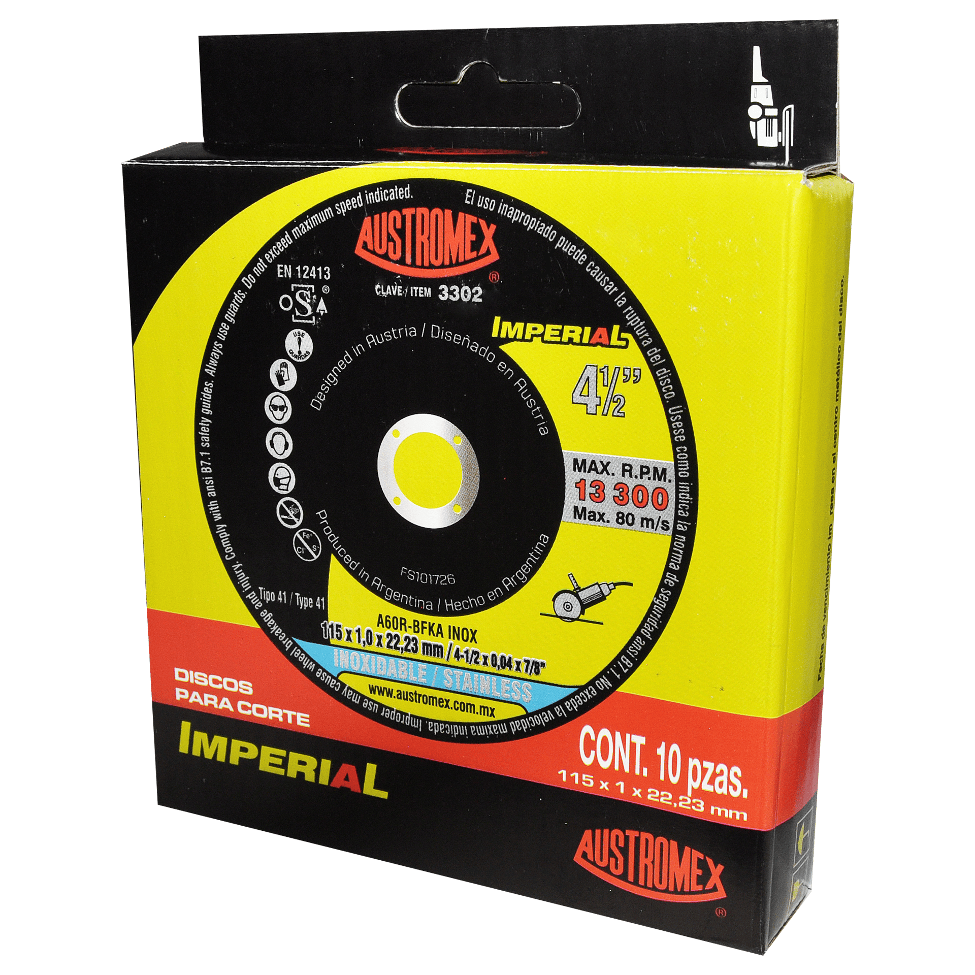 3302 41 A60R-BFKA INOX 4-1/2 x 0.04 x 7/8 AUSTROMEX Disco de corte para acero inoxidable de 115 x 1.0 x 22.23, IMPERIAL Esmeriladora Angular