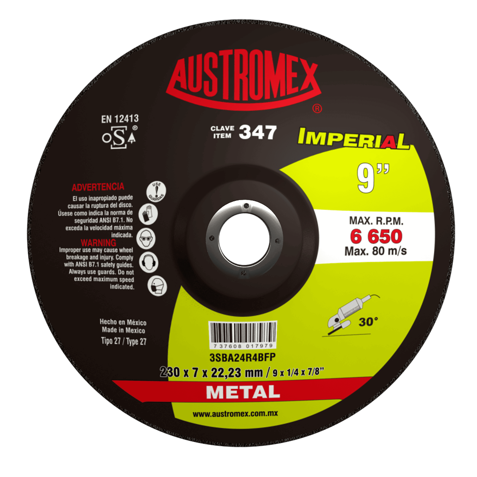 347 27 7SBA20R4BFP 9 x 1/4 x 7/8 AUSTROMEX Disco con centro deprimido para desbaste de metal Esmeriladora Angular